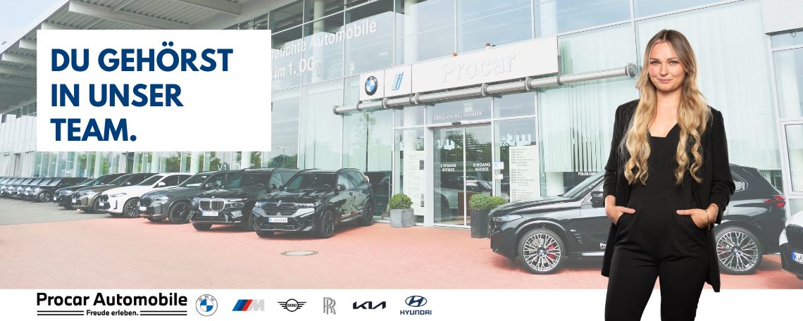 Sie leben für automobile Leidenschaft, lieben den Kontakt mit Menschen und möchten Teil einer starken Marke werden? Dann ist dies Ihre Chance, Ihre Karriere auf die Überholspur zu bringen. Bei Procar Automobile verkaufen Sie nicht nur Fahrzeuge – Sie begeistern unsere Kunden für die Faszination BMW, schaffen unvergessliche Erlebnisse und tragen aktiv zu unserem Erfolg bei.